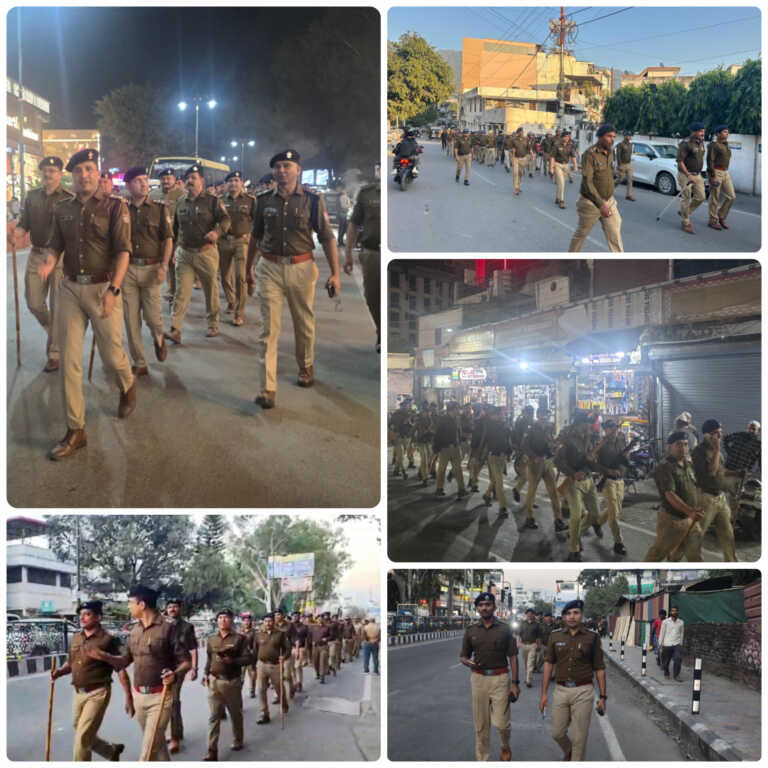 देहरादून: हाल ही में दिल्ली में हुई कार विस्फोट की घटना के दृष्टिगत पुलिस महानिदेशक, उत्तराखण्ड द्वारा दिये गये निर्देशों के क्रम में एसएसपी देहरादून द्वारा सभी अधीनस्थों को अपने-अपने थाना क्षेत्रो में शान्ति एंव सुरक्षा व्यवस्था के दृष्टिगत फ्लैगमार्च किये जाने के निर्देश दिये गये थे.इसी निर्देशों के क्रम मेें 12 नवंबर 2025 को एसएसपी देहरादून के निर्देशन में जनपद के शहरी व ग्रामीण क्षेत्र- प्रेमनगर,ऋषिकेश, पटेलनगर, कोतवाली व राजपुर क्षेत्र में पुलिस अधिकारियों के नेतृत्व में पुलिस व पीएसी के साथ मिलकर फ्लैगमार्च किया गया..