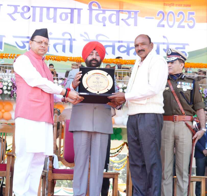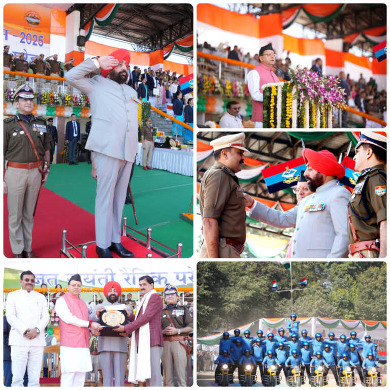 देहरादून:उत्तराखण्ड राज्य स्थापना के रजत जयंती समारोह के अवसर पर शुक्रवार को पुलिस लाइन, देहरादून में आयोजित कार्यक्रम में राज्यपाल लेफ्टिनेंट जनरल गुरमीत सिंह (से नि) एवं मुख्यमंत्री पुष्कर सिंह धामी ने प्रतिभाग किया.राज्यपाल ने इस अवसर पर आयोजित रैतिक परेड का निरीक्षण कर सलामी ली। राष्ट्रीय गीत ‘‘वंदे मातरम’’ के 150 वर्ष पूर्ण होने के अवसर पर कार्यक्रम की शुरुआत वंदे मातरम गीत से हुई। इस अवसर पर राज्यपाल एवं मुख्यमंत्री द्वारा ‘‘उत्तराखण्ड पुलिस पत्रिका-2025’’ का विमोचन एवं रजत जयंती पदक के प्रतीकात्मक चिन्ह का अनावरण किया गया.इस कार्यक्रम में पुलिस विभाग द्वारा विशिष्ट साहसिक प्रदर्शन किया गया, इसमें विशेष रूप से मोटरसाइकिल दल द्वारा किए गए उत्कृष्ट प्रदर्शन ने उपस्थित दर्शकों को रोमांचित कर दिया..
