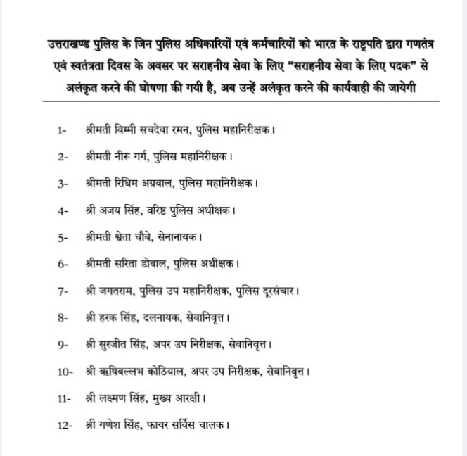 एसएसपी देहरादून को राष्ट्रपति मेडल,और 08 महानुभावों को राज्य गौरव सम्मान से सम्मानित किया गया..राज्यपाल ने उकृष्ट सेवाओं के लिए ‘राष्ट्रपति पुलिस पदक’ एवं ‘पुलिस पदक’ प्राप्त पुलिस अधिकारियों को सम्मानित किया..