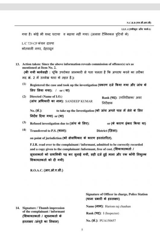 वही रजिस्ट्रेशन अधिनियम, 1908 की धारा 83 के तहत कूट रचना कर पंजीकरण कराने के मामले में संबंधित व्यक्तियों के विरुद्ध थाना कोतवाली में प्रथम सूचना रिपोर्ट दर्ज कर दी गई है। ऐसे में इस प्रकरण की गंभीरता को देखते हुए सब-रजिस्ट्रार कार्यालय देहरादून की भूमिका की भी जांच की जा रही है। प्रशासनिक स्तर पर कड़ी कार्रवाई की संभावना व्यक्त की गई है। साथ ही, ऋषिकेश सब-रजिस्ट्रार कार्यालय की तर्ज पर रजिस्ट्रार कार्यालय देहरादून का वृहद निरीक्षण भी शीघ्र किया जा सकता है।
