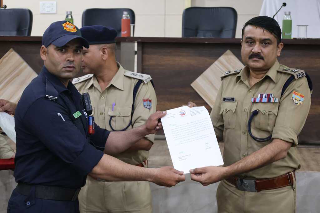 देहरादून:बुद्ववार (15 अक्टूबर 2025) को एसएसपी देहरादून अजय सिंह द्वारा पुलिस लाइन देहरादून में पुलिस कर्मियों का सैनिक सम्मेलन लिया गया.इस दौरान एसएसपी द्वारा उपस्थित पुलिस कर्मियों से उनकी समस्याओं की जानकारी लेते हुए उपस्थित अधिकारियों को उनके त्वरित निस्तारण के निर्देश दिये गये.वही इस अवसर पर एसएसपी देहरादून द्वारा उत्कृष्ठ कार्य करने वाले 76 पुलिस अधि0/कर्म0 को प्रशस्ति पत्र देकर सम्मानित किया गया.साथ ही भविष्य में भी इसी प्रकार अपने कर्त्तव्यों का निर्वहन करने के लिये प्रेरित किया.