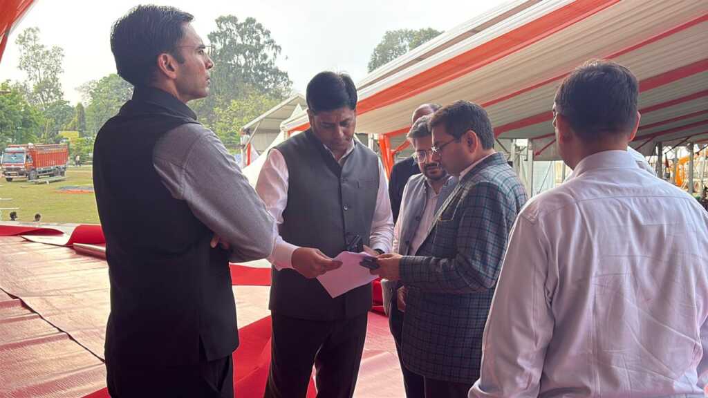 देहरादून : मुख्यमंत्री पुष्कर सिंह धामी के नेतृत्व में उत्तराखंड सरकार 4 साल बेमिसाल कार्यक्रम सोमवार 23 मार्च 2026 को देहरादून के परेड मैदान में आयोजित होना है. इस भव्य कार्यक्रम के दृष्टिगत सुरक्षा के समुचित बंदोबस्त किए जा रहे हैं. इसके लिए रविवार जिलाधिकारी और एसएसपी देहरादून द्वारा कार्यक्रम स्थल पहुंचकर सभी तरह की व्यवस्थाओं का निरीक्षण किया गया.जानकारी के अनुसार 23 मार्च 2026 को परेड ग्राउंड में आयोजित होने वाले कार्यक्रम में विभिन्न महानुभावों, गणमान्य अतिथियों के साथ- साथ भारी संख्या में लोगों के आने की संभावना हैं. इसी के दृष्टिगत सुरक्षा व अन्य व्यवस्थाओं का जायजा लेने रविवार 22 मार्च 2026 को जिलाधिकारी देहरादून तथा वरिष्ठ पुलिस अधीक्षक देहरादून द्वारा परेड ग्राउंड का निरीक्षण किया गया। निरीक्षण के दौरान जिलाधिकारी देहरादून व एसएसपी देहरादून द्वारा उपस्थित अधिकारियों को कार्यक्रम हेतु की गई व्यवस्थाओं के संबंध में जानकारी प्राप्त करते हुए समय से सारी व्यवस्थाओं को पूर्ण करने के निर्देश दिए गए।